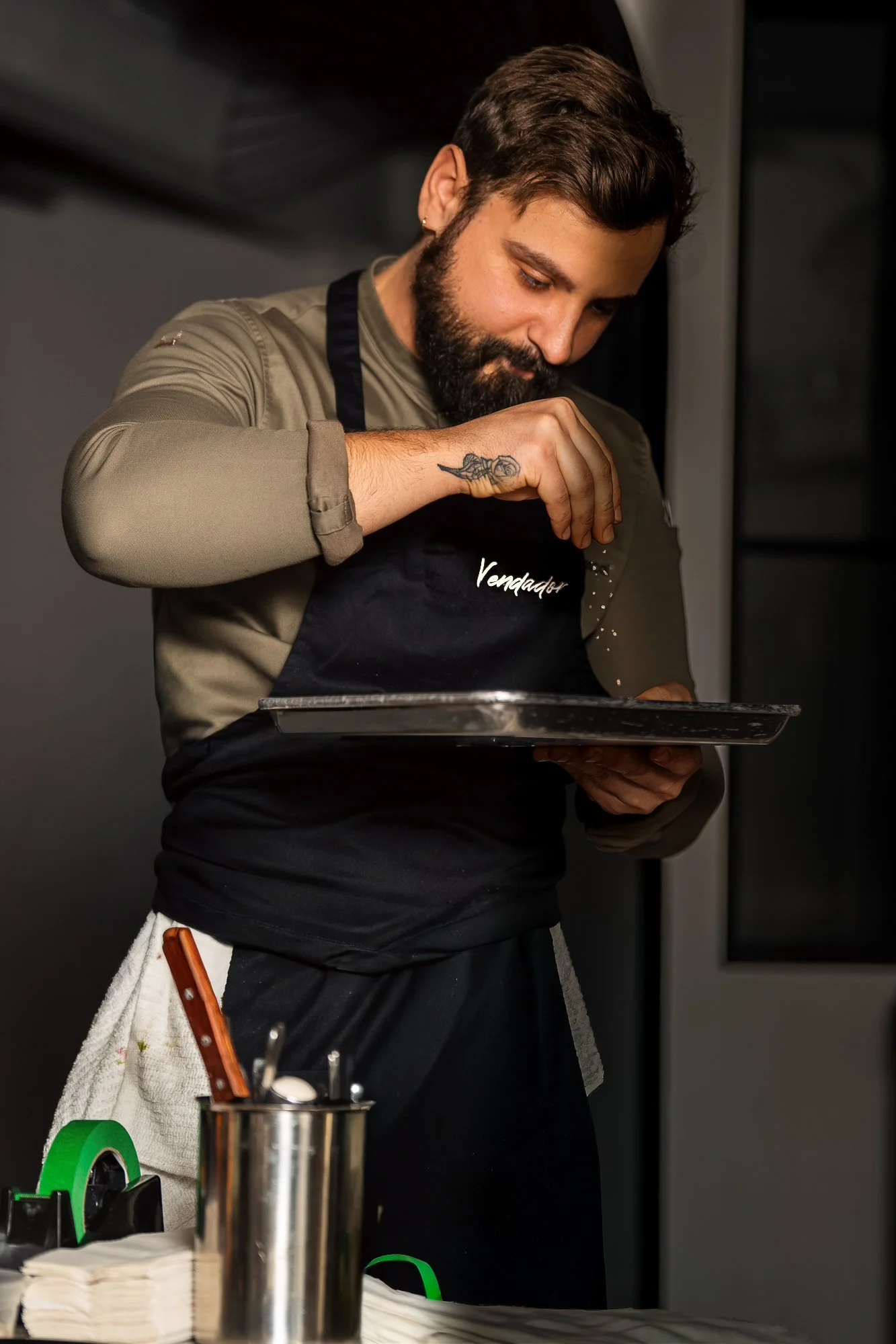 We don't arrive with trays and chafing dishes. Vendador brings an entire restaurant brigade to your home — Michelin-trained chefs, sommeliers, mixologists, servers, and every piece of plateware, glassware, and linen your table requires. Nothing is missing. Nothing is left behind.