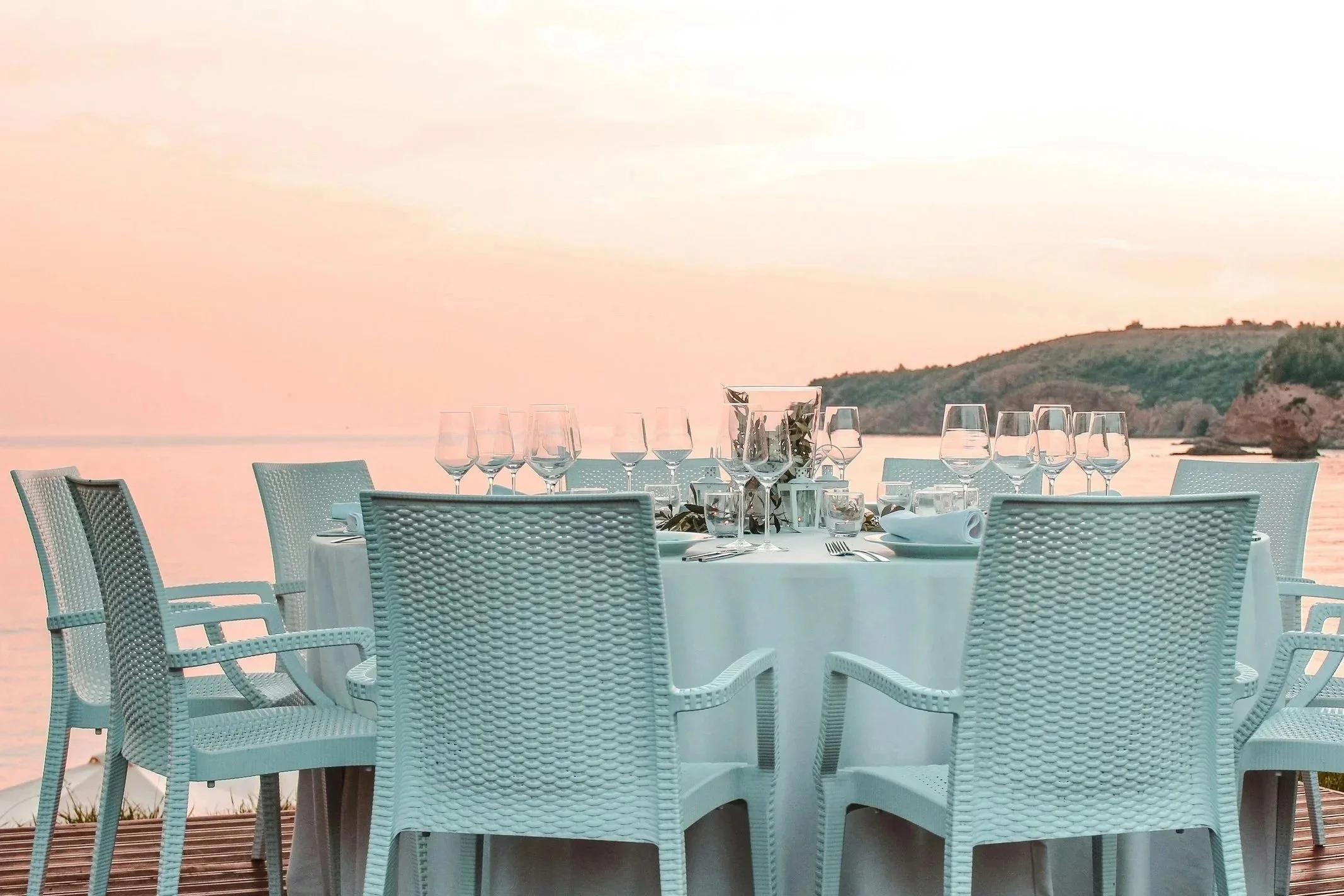 We provide all the plateware, silverware, glassware, serviceware, cooking equipment, and linen napkins for your dining experience. Our goal is that you never have to lift a finger, and part of that means providing enough dishes and flatware for every course. We love working with our inventory of hand selected ceramics and high quality stemware. For specific plate styles outside of our collection, we can arrange rentals from a local company on your bej for a procurement fee.